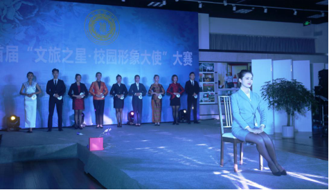 11月19日晚,明道楼四楼大厅掌声雷动,首届“文旅之星·校园形象大使”决赛在这里举行。来自文化旅游学院各专业的10名学生正在这里一决高下。文化旅游学院全体教师、各专业学生代表以及支持单位成都城市名人酒店、成都秦皇假日酒店的代表一起观看了此次比赛。
