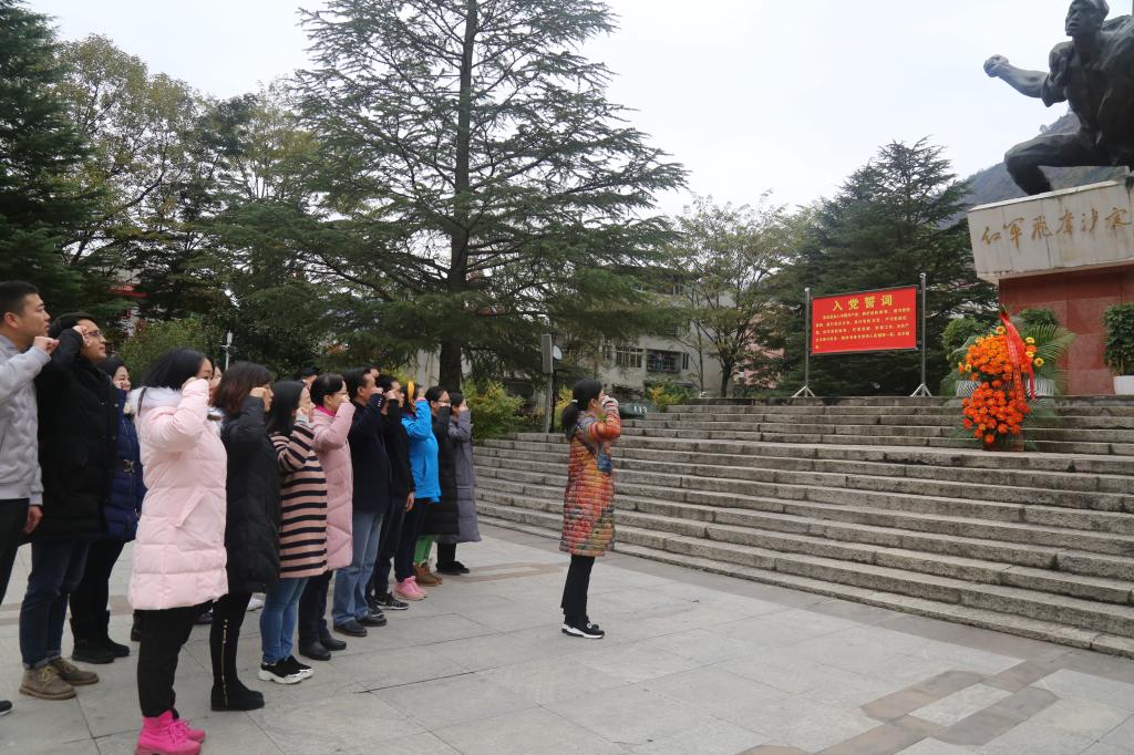 在红军飞夺泸定桥纪念馆广场前,学院党总支书记、院长黄萍带领全体教职工举行了向红军飞夺泸定桥纪念碑敬献花篮仪式,表达了对革命先烈的缅怀和对人民英雄精神的敬畏。随后,党员同志们面对鲜红的党旗,庄严地举起右手,在黄萍的带领下重温入党誓词, 重温了入党宣誓时的庄严承诺和坚定决心,在党旗下接受了心灵的净化和洗礼。