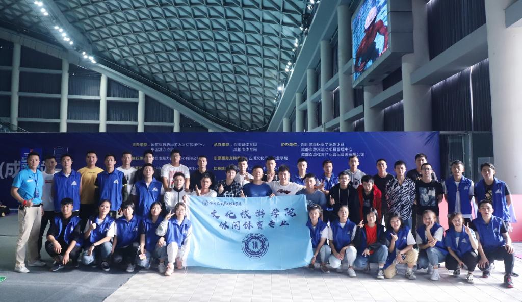 2019年全国青少年游泳U系列比赛(成都站)于9月21日在成都市双流区中国现代五项赛事中心游泳馆拉开战幕。文旅学院休闲体育专业40名学生应邀参与志愿者工作,休闲体育专业杨龙老师作为国调裁判承担比赛技术检查工作。比赛期间,文旅学院师生良好的工作态度和专业能力也得到国家体育总局游管中心和参与单位的一致好评。