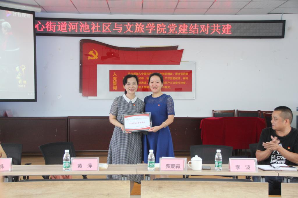 活动伊始,学院党总支书记黄萍、河池社区党总支书记贾朝霞代表双方分别介绍了基层党组织情况,并互授“基层党建结对共建”铭牌。双方就基层党建、党员“双报到”、志愿服务、资源共享、人才共育、活动联办等方面展开了交流,特别就如何助力2021年大学生运动会筹备工作进行了深入讨论。休闲体育专业负责人毛前伟发挥专业优势,对社区文体活动的开展、媒体平台推广等工作提出良好建议。