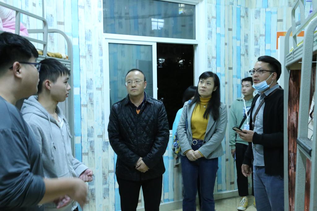 14日晚,张宗胜、梁中正、田娅、曾兴和新生辅导员一起走访了我院新生宿舍,看望新同学们。院领导与新生同学亲切交谈,了解新生同学到校感受,鼓励同学们尽快熟悉美丽的校园,刻苦学习,开启美好的大学篇章。新同学们纷纷表示,将以崭新的精神面貌迎接大学生活新挑战,实现新跨越,谱写新华章。