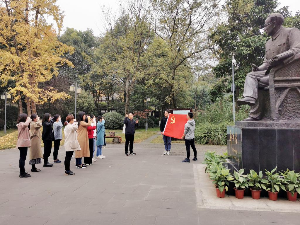 在讲解员的带领下,全体党员通过大量珍贵的文物史料、故居场景,全方位、多角度地了解了郭沫若在文学艺术、历史考古、思想文化、科学教育、社会活动等领域的卓越成就及波澜壮阔的传奇人生,纷纷感叹郭老先生为国家发展做出的突出贡献。带着对郭沫若先生的崇敬,全体党员在郭沫若先生的雕像前,面对党旗庄严重温了入党誓词。