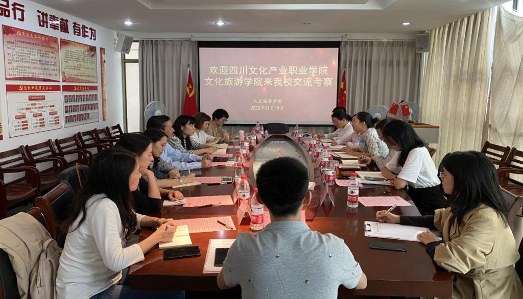 在义乌工商职业技术学院,人文旅游学院院长李妍、副院长徐峰及5位专业负责人与我院教师进行了广泛深入的交流。义乌工商职业技术学院根据本地产业、行业的特色优势开展课程体系研发和改革,与义乌本地企业建立长期校企合作育人模式,采用项目制的形式积极开展社会服务。义乌工商职业技术学院在创业教育、创意教育和国际合作方面在全国高职院校中处于领先水平。