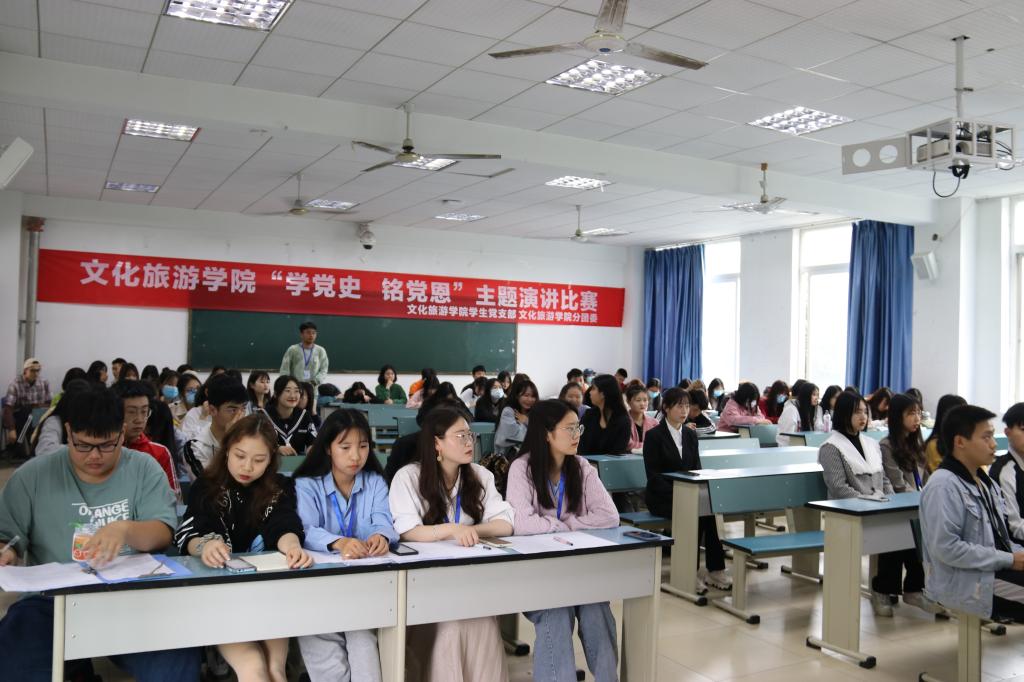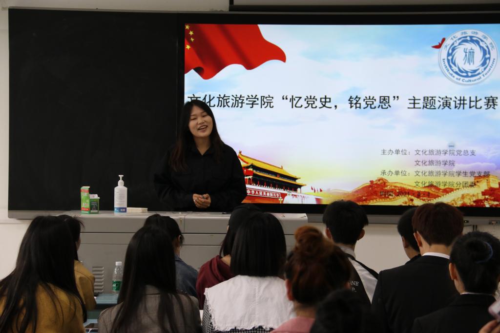 为热烈庆祝中国共产党成立100周年,引导广大青年学生领悟红色精神,传承红色基因,持续做好青年学生的思想政治引领和价值引领工作,文化旅游学院于4月1日中午开展“忆党史,铭党恩”主题演讲比赛,学生党支部书记聂维、分团委负责人王力参加活动,来自文化旅游学院各专业的10名选手参加了此次比赛。