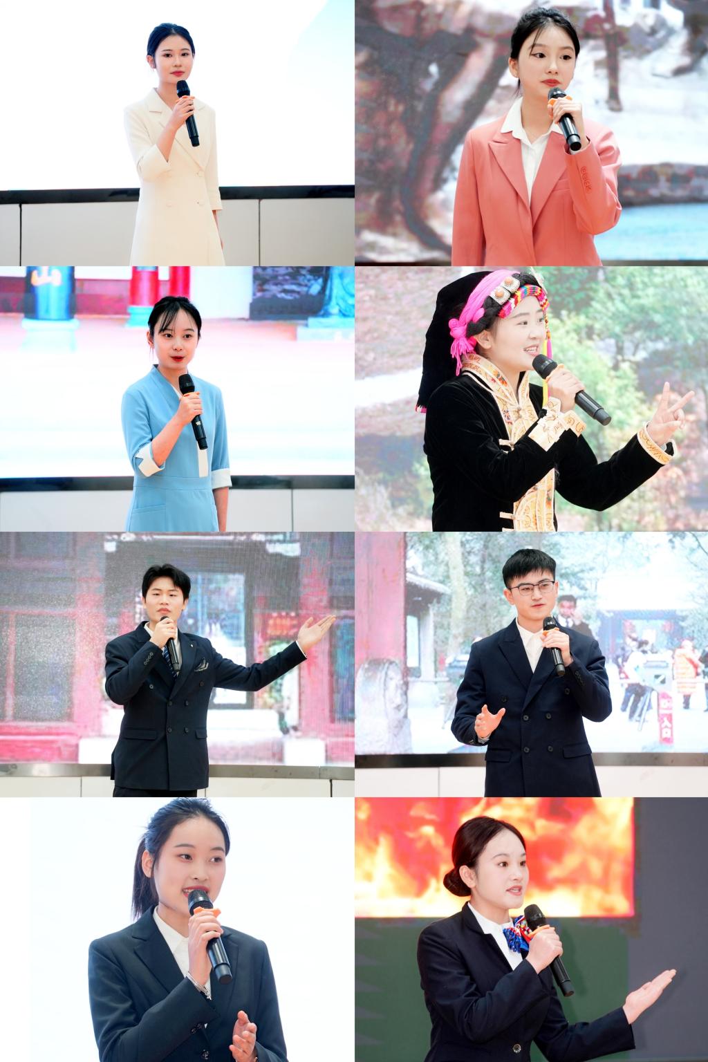 在专题导游词创作与现场讲解环节,选手们针对政务考察团、中小学研学团、亲子团三个团型和民族传统节日、工艺美术、饮食文化、历史文化、建筑艺术、古典园林艺术、表演艺术六类主题文化创作了专题导游词并进行现场讲解。在自选景点讲解环节,选手们从不同的文化切入点对甲居藏寨、故宫博物院、汉桓侯祠、蓬莱阁、武侯祠、红旗渠、邓小平陈列馆等众多景点进行了精彩的现场讲解。在导游才艺运用环节,选手们结合导游带团活跃气氛的场景,通过吉他弹唱、朗诵、情景剧、舞蹈、京剧等方式为现场师生呈现了一场精彩的文化盛宴。