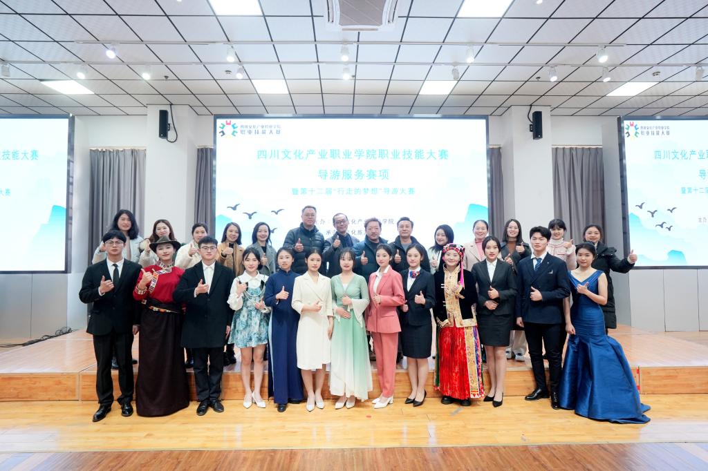 本届大赛邀请四川省导游协会副会长宫庆伟、国家“金牌导游”张岚、高级英语导游许东霞、四川省旅行社协会研学专委会主任黄海、四川省“十佳导游”徐元历等行业专家担任评委。大赛对标全国职业院校技能大赛导游服务赛项的赛制和标准,初赛设置导游知识测试、自选景点讲解、英语对话三个环节,决赛设文化专题导游词创作与现场讲解、自选景点讲解、才艺运用三个环节。经过层层选拔,11名选手成功晋级决赛。