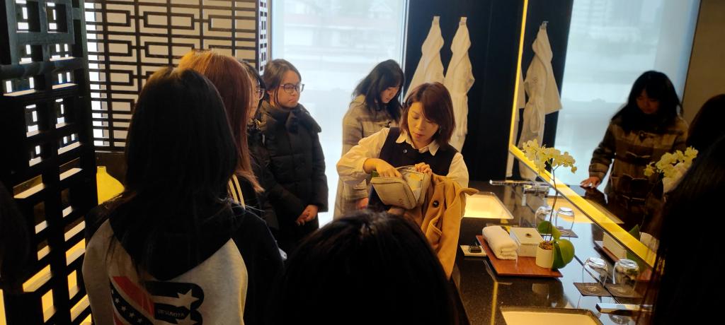 次日,同学们走进被誉为“亚洲最具辨识度的精品奢华酒店”——居舍酒店,实地探访特色客房、意大利餐厅、大堂吧等核心区域,切身感受精品酒店在空间设计、服务动线与顾客体验方面的融合实践。人力资源经理围绕数字化时代酒店人才的能力模型与发展路径展开讲解,强调跨文化沟通、创新思维与扎实专业能力的重要性。