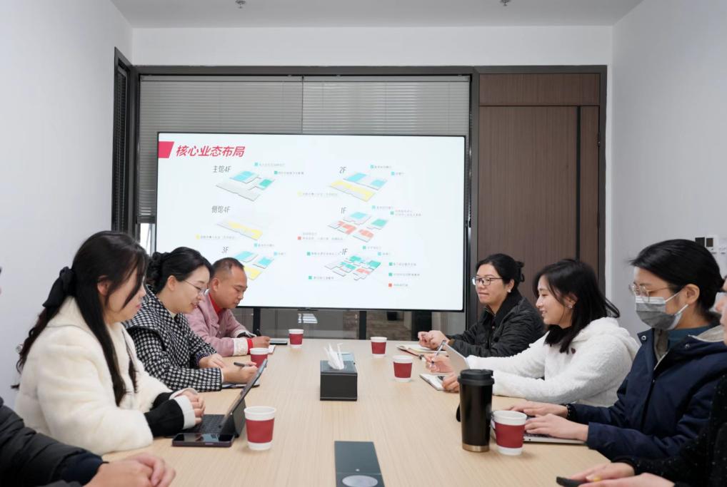 公司副总经理陈琅对学院一行的到访表示热烈欢迎,并方重点介绍了四川省级重点项目——“四川名人馆”项目建设进展及合作需求。陈琅从场馆建设规划、项目引进、研学课程开发以及学生实习岗位设置等方面做了详细介绍。双方围绕学生实习实训、师生演艺平台搭建、研学项目合作、非遗课程师资、非遗集市打造等领域进行了深入交流,达成校企协同育人、共建实习就业基地等合作共识,将为学院师生提供更多实践机会与就业岗位。学院党总支书记杨裴羿表示,此前校企双方已在学生职业规划赛指导、进校专场招聘及学校双选会上开展了合作,希望以此次访企拓岗为契机,进一步整合双方资源,推动产学研深度融合,共同助力毕业生更加充分、更高质量就业。