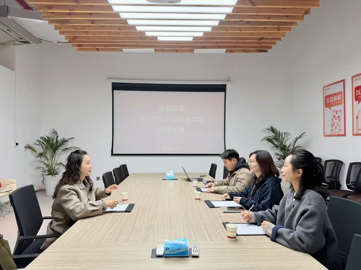 在完美世界文创产业园区运营总监夏文成引导下,曾媛一行先后走访了安得音乐、花吃动漫等企业,深入了解了企业的运营模式与人才需求。参观结束后,双方围绕人才培养、产业导师、微专业共建等议题展开了深度交流。并在共建教学实践基地、产业学院与实训平台、推动课程共建培养等方面达成初步共识,共探协同育人新机制。