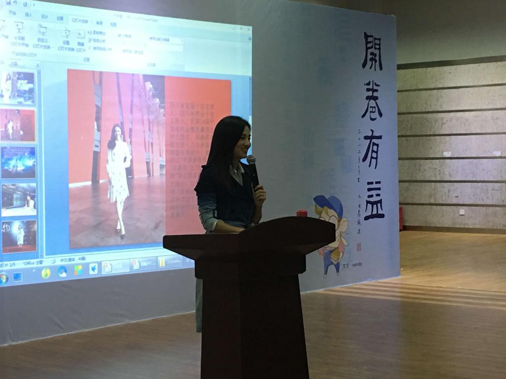 10月11日晚,由我校图书(档案)馆主办,文化传播学院与数码学院联合协办的行知大讲堂,在图书馆博雅展览厅举行。四川省首届十佳主持人、四川电视台十佳主持人、现任四川电视台新闻访谈类节目《第四直播间》主持人杨畅担任主讲嘉宾,她以“会说话是一种怎样的人生体验”为题,为400余名师生带来了一场精彩的讲座。