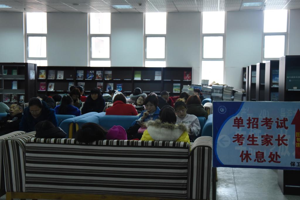 3月25日,图书馆迎来近千人次参加我校单招考试的学生家长,志愿者和勤工学生们主动热情的服务,赢得家长们好评。