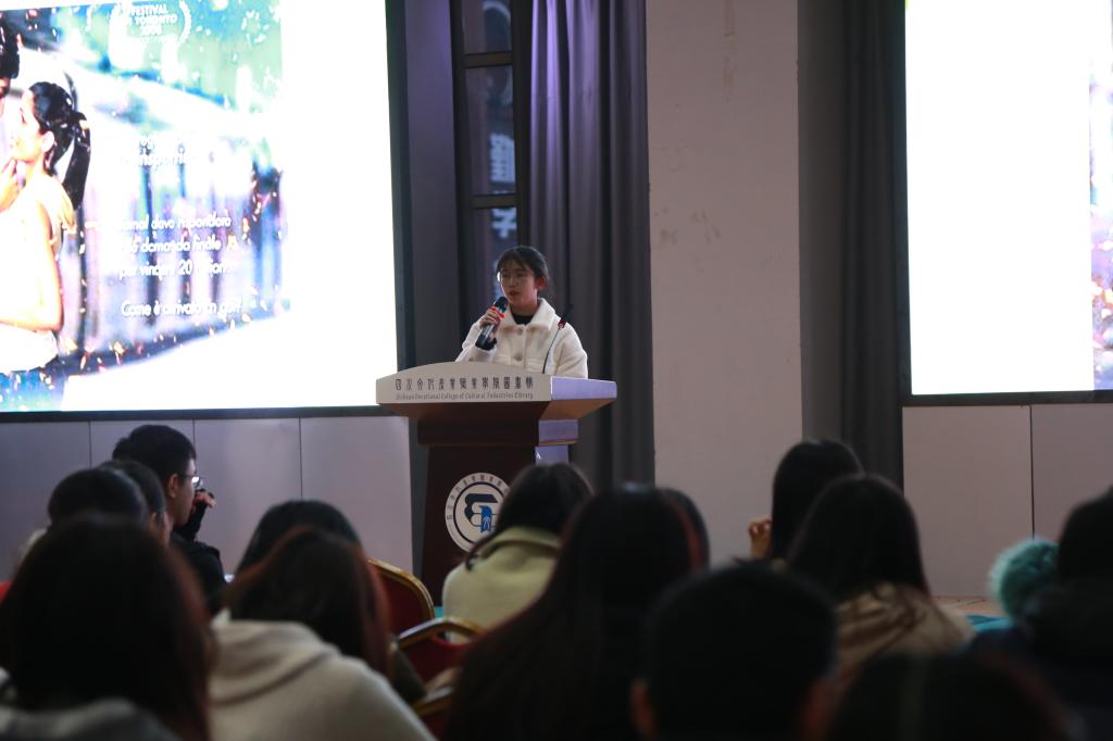 唐雨欢为同学们介绍了影片的主要角色、社会背景,讲诉了血肉共生故事里的兄弟亲情及爱情。唐雨欢感慨地表示,人之所以能不断成长,是因为人具有思考问题的能力和情感思维。我们不要被恶劣的环境改变梦想,不被世人的质疑摧毁希望,要始终正直善良,奔跑在追求美好与幸福的路上。