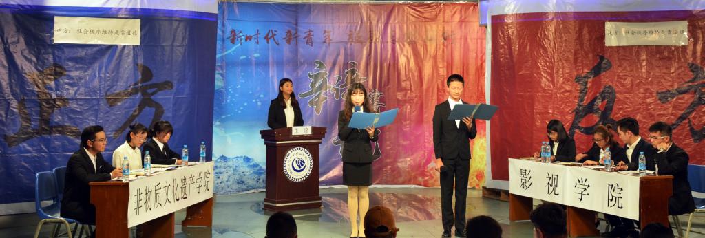2017年11月16日,由共青团四川文化产业委员会主办,四川文化产业职业学院校学生会协办的“新时代新青年,强国志报国行”主题辩论赛在我校新演播中心举行。非物质文化遗产学院学生代表李文华、李晗漠、郭兰钰、邹鹏参加了此次主题辩论赛活动,并在本次活动初赛中成绩斐然,获得第一名的佳绩。
