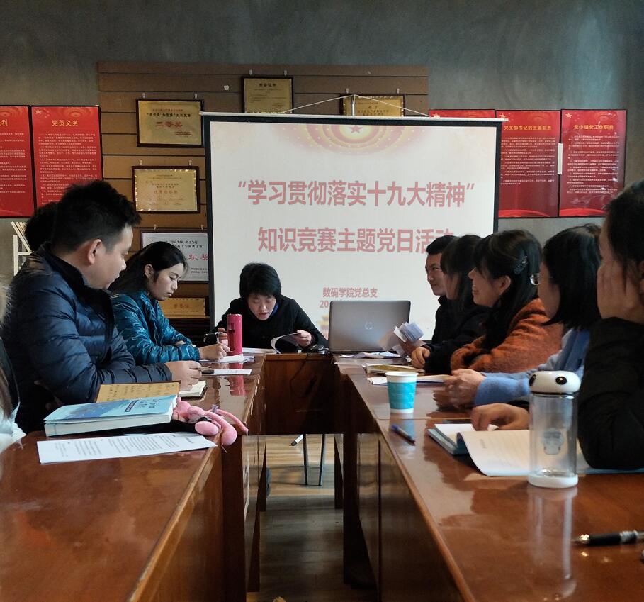 12月12日下午,我院全体党员同志在创慧楼三楼党员活动室开展“学习贯彻落实十九大精神”知识竞赛主题党日活动。本次活动有两个环节,党的十九大精神知识竞赛和党员同志畅谈学习党的十九大会议精神心得体会。