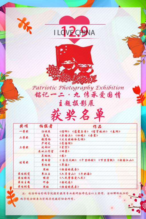为纪念“一二·九”运动,激发广大学生的爱国热情,由影视学院分团委主办,影视学院社团管理委员会和摄影协会承办的“铭记一二·九 传承爱国情”主题摄影展于12月中旬拉开帷幕。