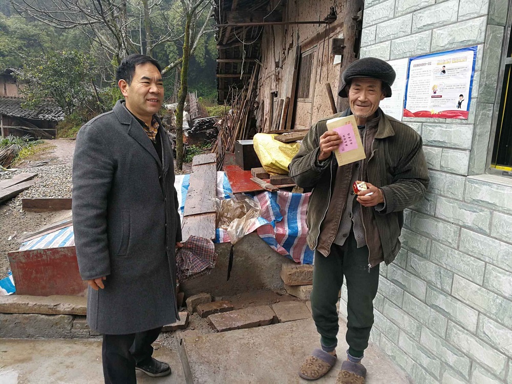 肖必恒一行深入到新店镇千坵村12户贫困家中开展面对面慰问,为他们送去了慰问品、慰问金并送上了新春的祝福。