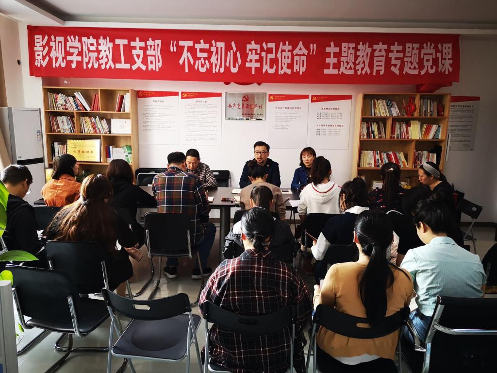 按照学校“不忘初心,牢记使命”主题教育工作的安排,10月12日下午,影视学院教工支部在颖艺楼207党员学习室召开“不忘初心,牢记使命”主题教育专题党课。学院党总支书记、院长范欣,副书记吴妮徽,教工支部书记鲜力东、各支部支委及全体教工支部党员参加会议。