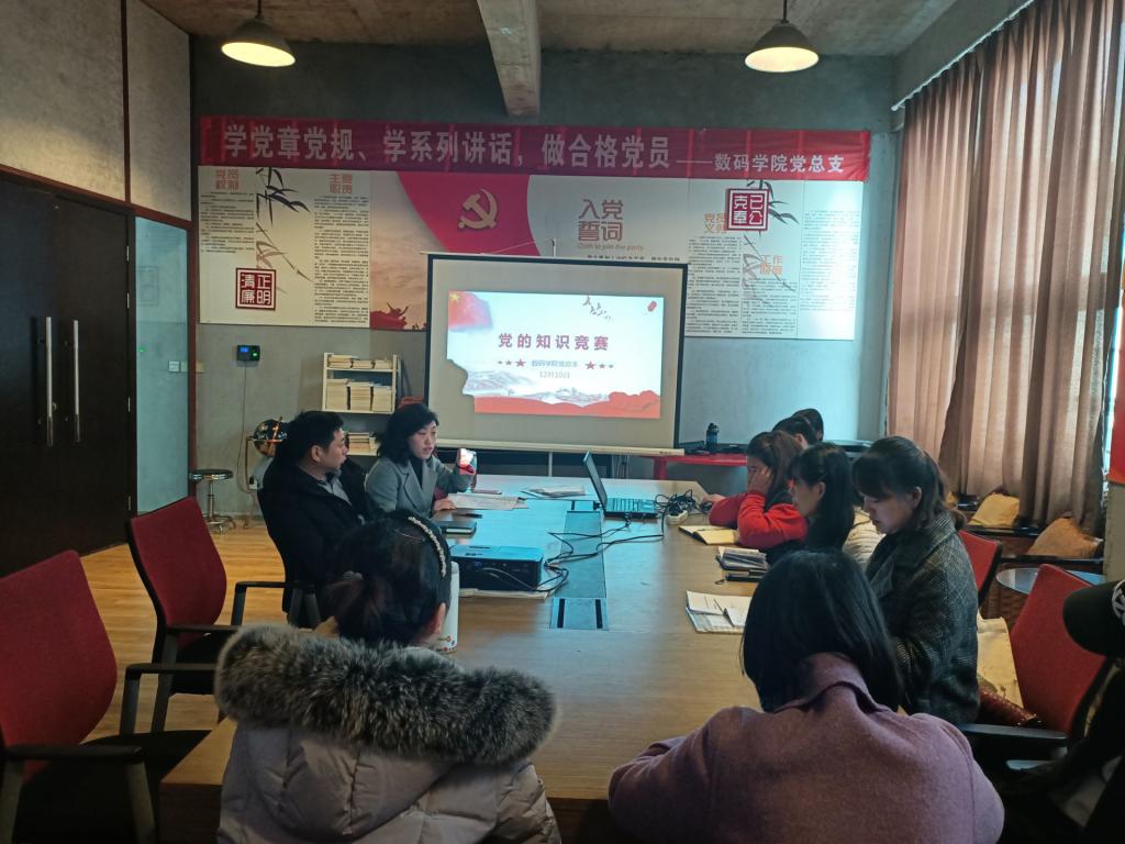 为加强党的基层组织建设,提升党员党性修养,引导全体党员干部坚定理想信念,增强党性意识、宗旨意识,严守党的纪律,严明党的规矩。近日,数码学院院党总支在创慧楼党员活动室开展党的知识竞赛主题党日活动。