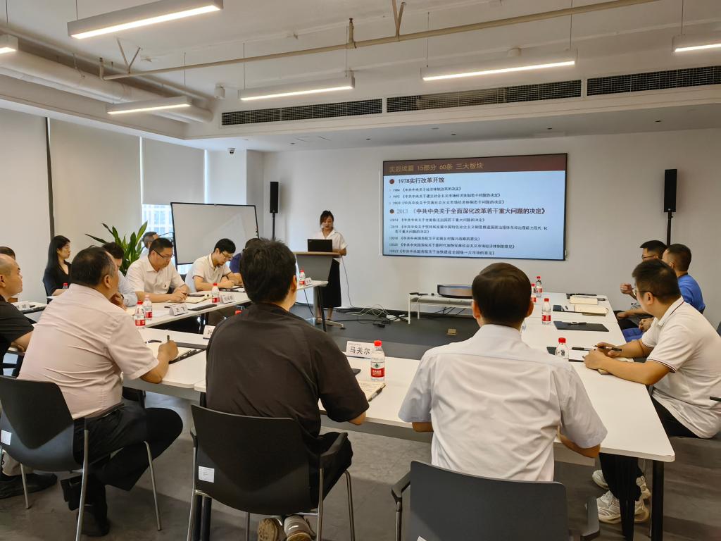 8月28日下午,我校马克思主义学院洪雯婷老师受邀到中金金融认证中心有限公司西部分公司,就学习贯彻党的二十届三中全会精神进行宣讲活动,参加活动的有四川银联第一党支部和中金金融认证中心有限公司第十六党支部的全体党员同志。