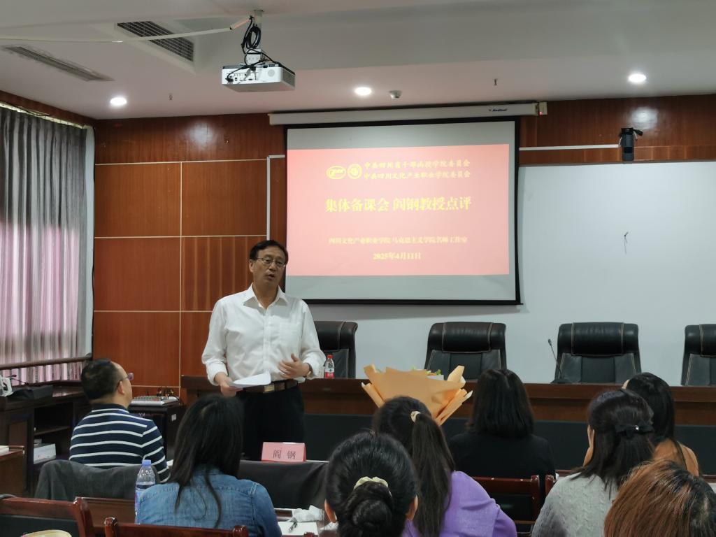 为促进我校思想政治理论课建设与发展,打造“有深度、有温度、有效度”的思政金课,4月11日下午,马克思主义学院在行政楼503会议室举办本学期第三次集体备课会暨专家辅导讲座,曾获全国高校首届“最美思政课教师”、全国高校思想政治理论课教师影响力标兵人物、四川大学教学督导、四川大学锦江学院马克思主义学院院长阎钢教授应邀进行指导并作讲座。马克思主义学院全体教师参与会议,会议由马克思主义学院院长张宗胜主持。