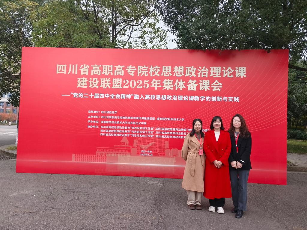 11月22日,四川省高职高专院校思想政治理论课建设联盟2025年集体备课会举行。马克思主义学院党总支副书记、四川省高校思想政治教育名师工作室主持人马吉宏等一行3人参会。