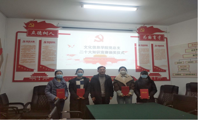 深入学习贯彻落实党的二十大精神,学习领会习近平新时代中国特色社会主义思想,增强支部党员对二十大相关知识的了解,积极营造“以赛促学、以学促知、以知促行”的学习氛围,引领支部党员坚定理想信念、加强理论修养,切实把思想和行动统一到党的二十大精神上来,2022年12月5日,文化信息学院党总支组织开展二十大知识竞答活动。竞赛采用线上限时答题形式,总支共23名党员,全部投入到了答题活动中,并评出一等奖两名,二等奖三名,三等奖三名,圆满完成了此次线上答题活动。