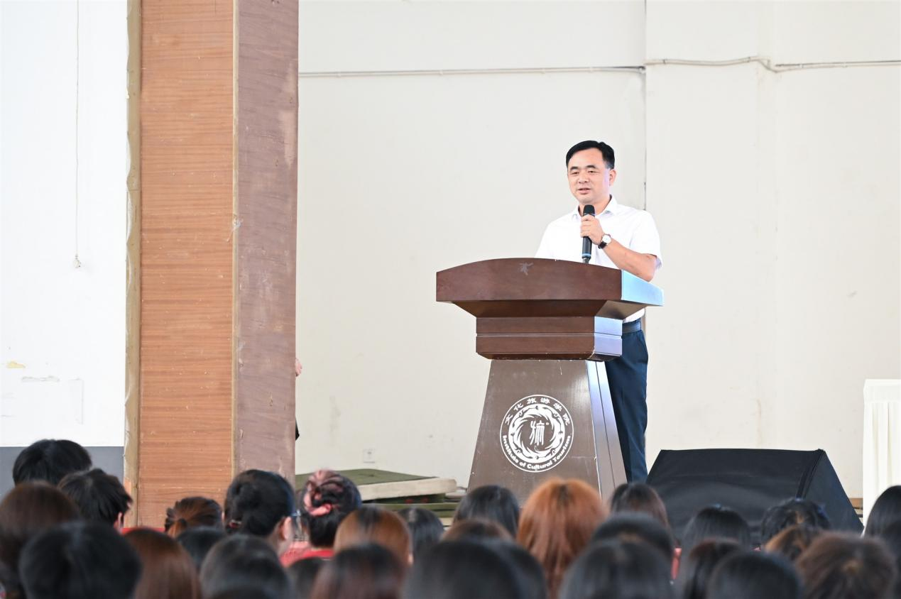 专职组织员梁中正结合自身从教四十载的经历,回顾了作为一名教育工作者一路走来的感悟与收获。他勉励在场教师坚守育人初心、传承师者精神,同时寄语新生珍惜时光、勤学奋进,并表达了对文旅学院未来发展的美好祝愿,希望学院蒸蒸日上、再创辉煌。